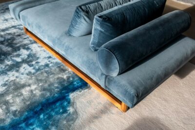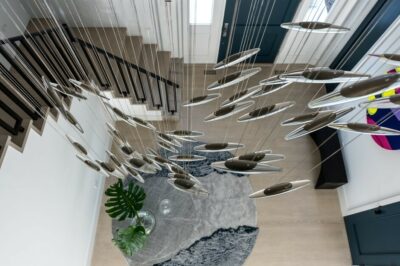 為了這個(gè)項(xiàng)目,Buzzetta 聰明地從我們的版本中挑選了三件定制尺寸的作品。費(fèi)爾南多-馬斯特蘭杰洛(Fernando Mastrangelo)創(chuàng)作的 Reverence 版中的 Rupture I,位于入口門廳。 Reverence Edition 的 Ten Thousand Years I與色彩鮮艷的沙發(fā)和諧搭配,成為大客廳的點(diǎn)睛之筆。